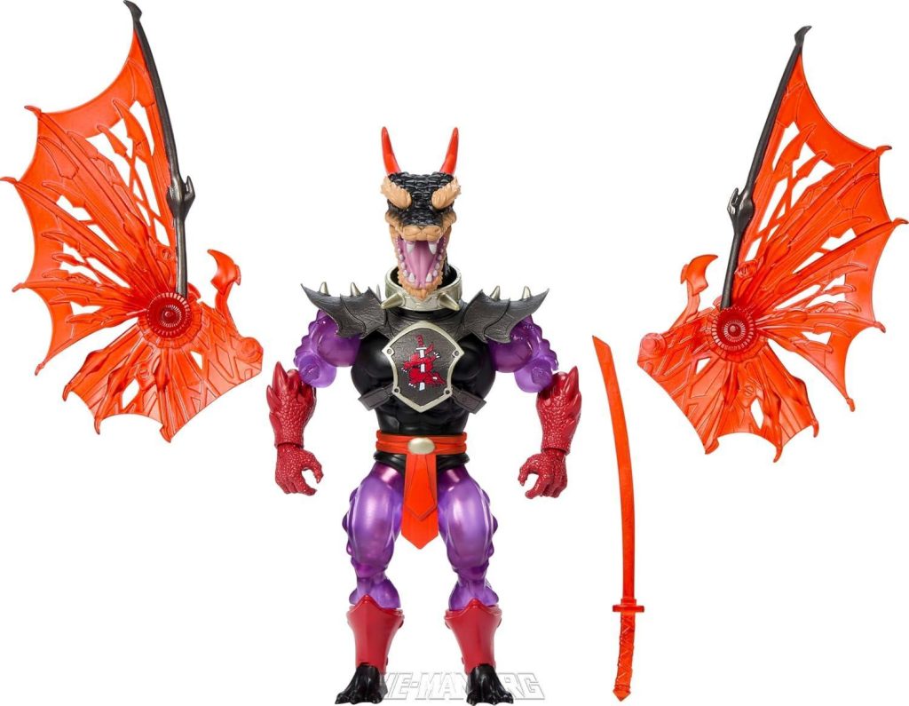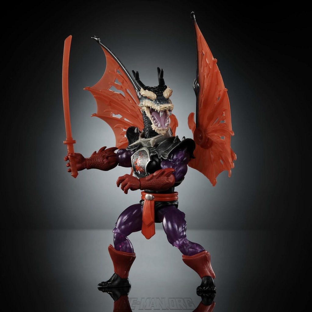 MOTU Origins Turtles of Grayskull Reptile Wars Ninjor re-envisioned the classic MOTU character as a mutated dragon character. He came with articulated wings, a removable costume, and a Katana.