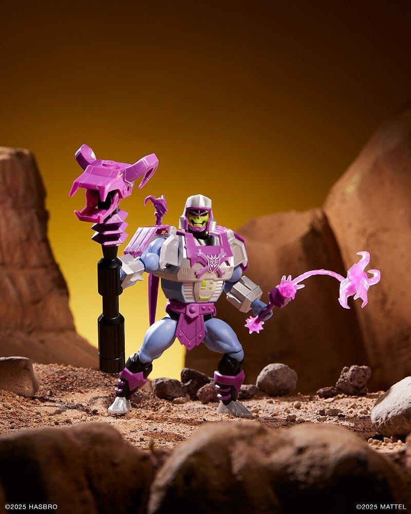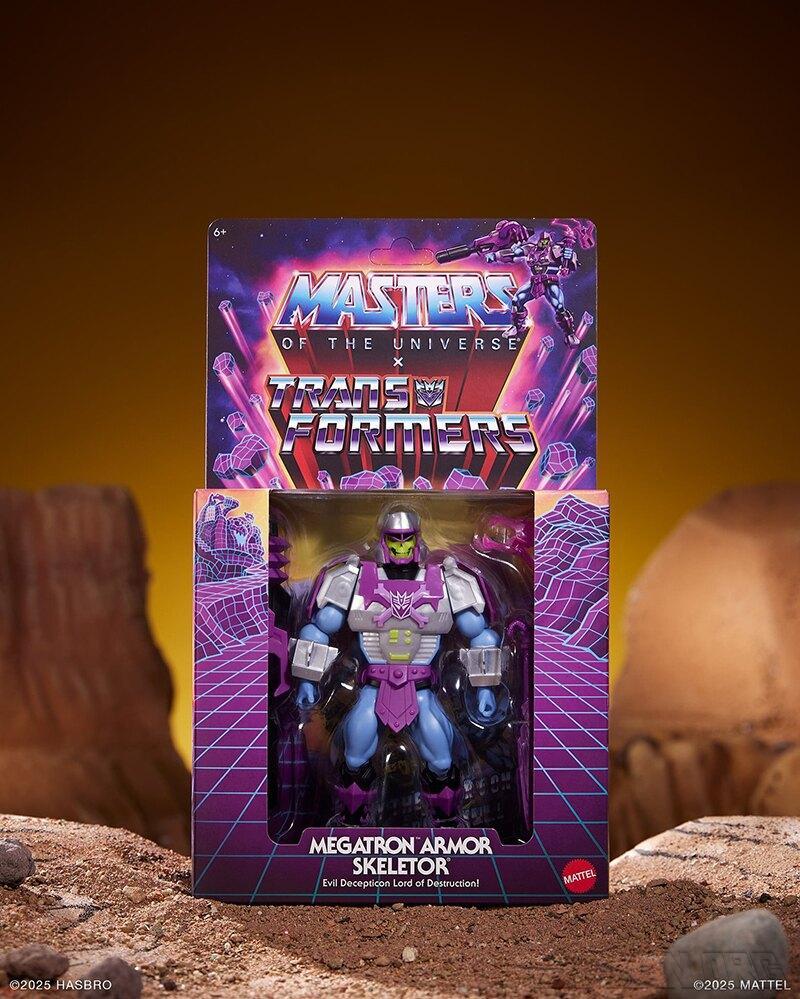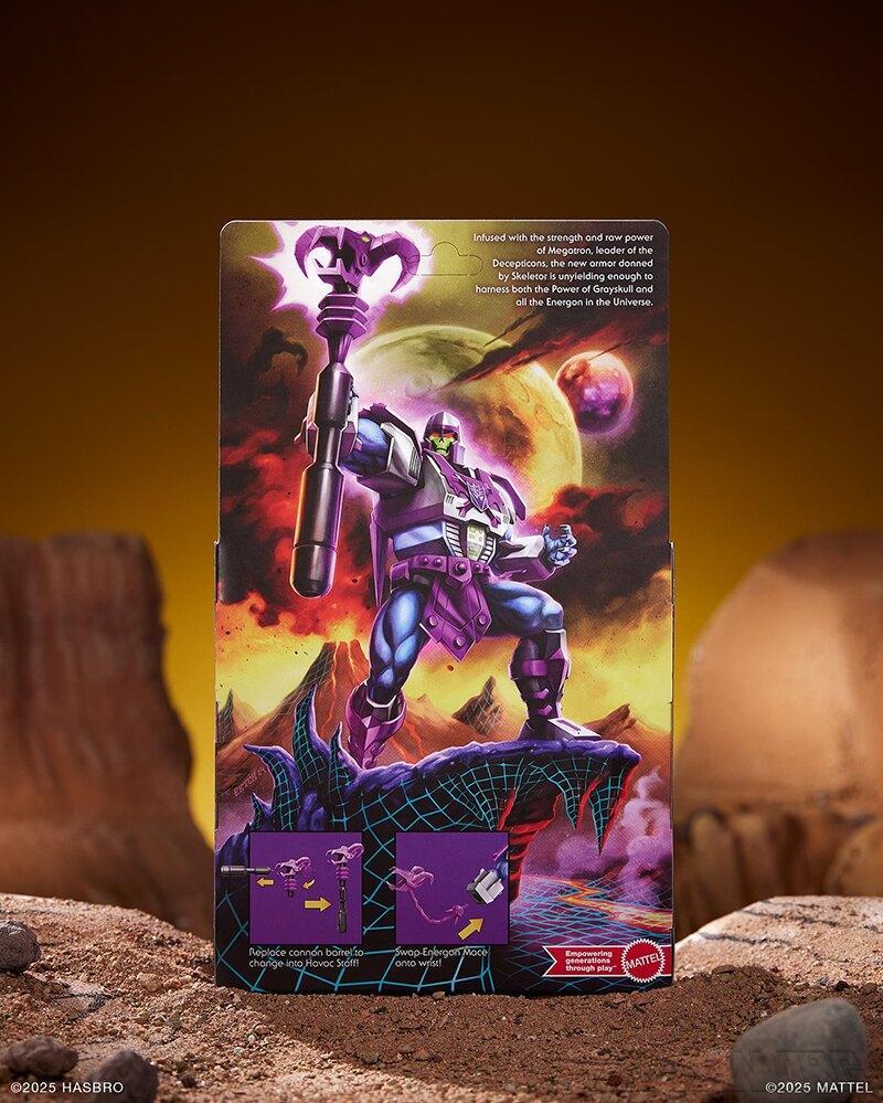 Masters of the Universe x Transformers Megatron Armor Skeletor gave old bone face an all new look with armor inspired by the Megatron Transformers character. He came with a Havoc Staff-themed cannon, short sword and flail.