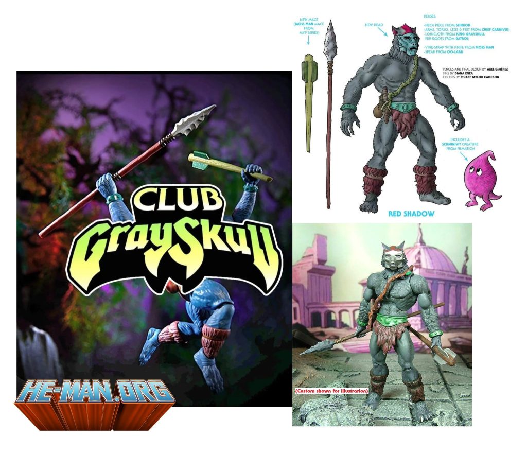 Red Shadow has been teased for a MOTU Origins Mattel Creations release! Also shown, Axel Giménez’ B-sheet design for the character, and an old custom figure made in the MOTU Classics era. We’ve been hearing that the order date will be November 18, but watch this space for any updates!