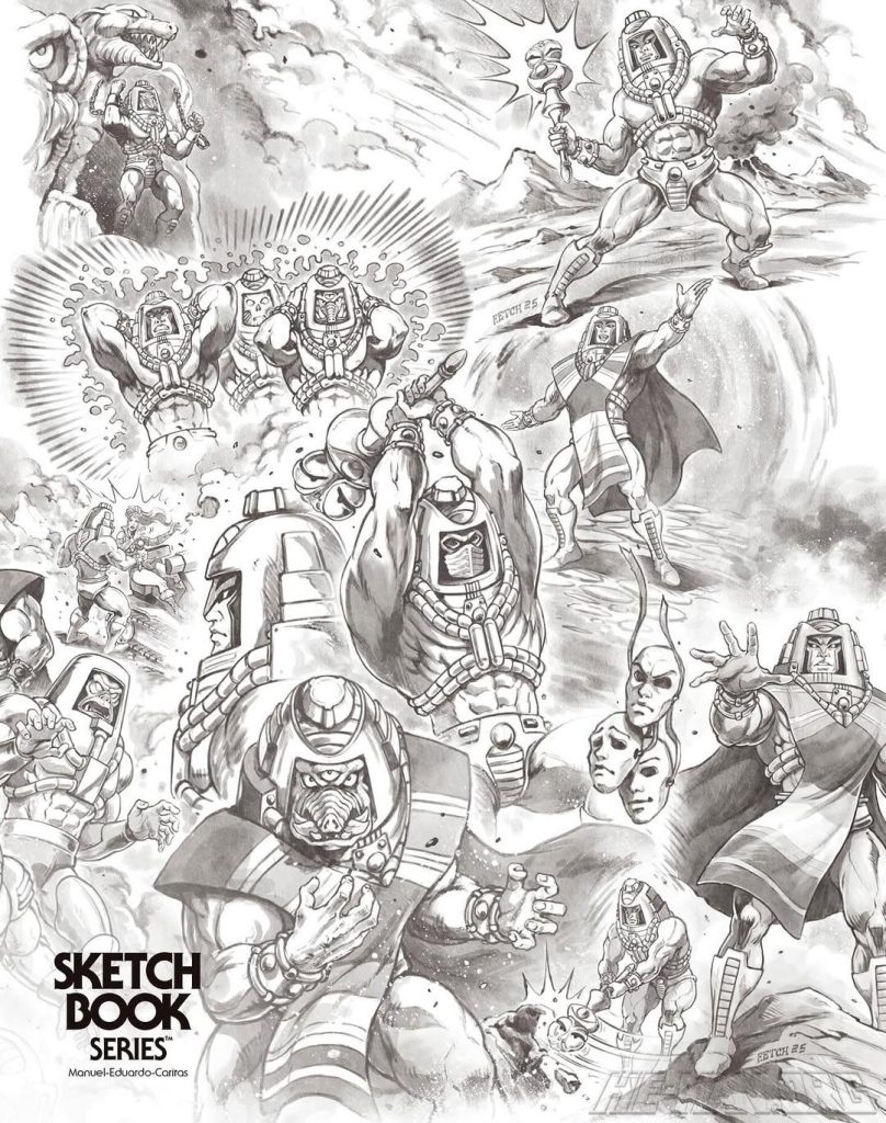 Roy Juarez has shared the packaging artwork for the upcoming MOTU Origins Sketch Book Man-E-Faces, based on Mark Taylor’s original concept art for the character. The artwork on this set is by “Fetch” Francisco Etchart.