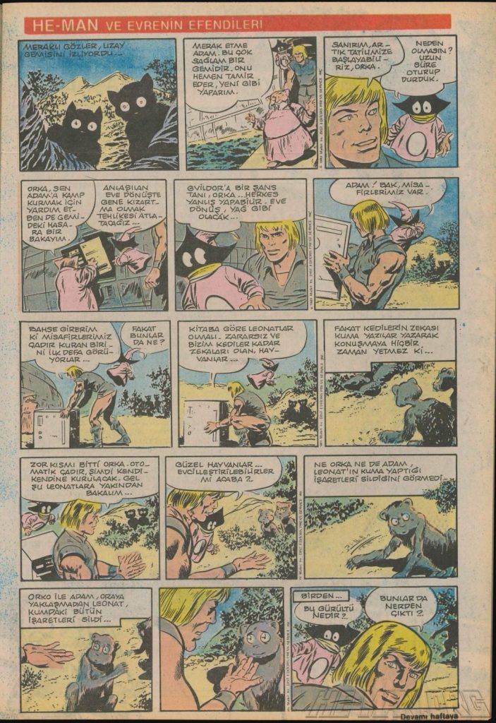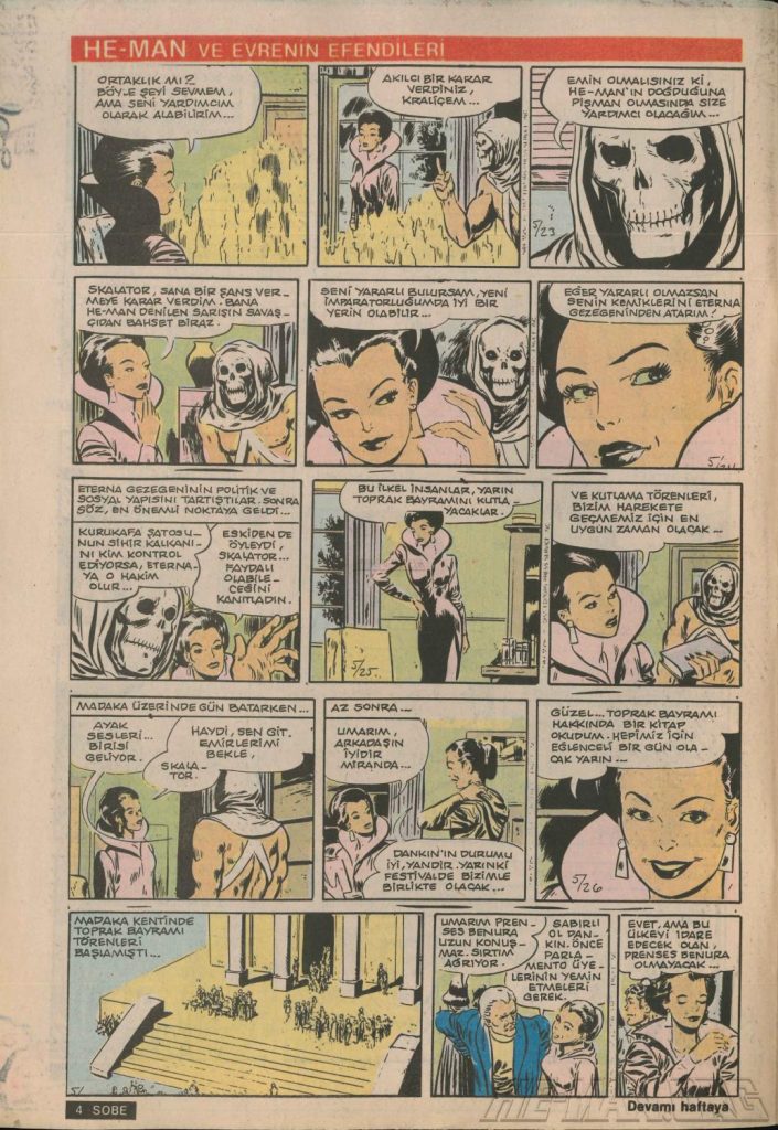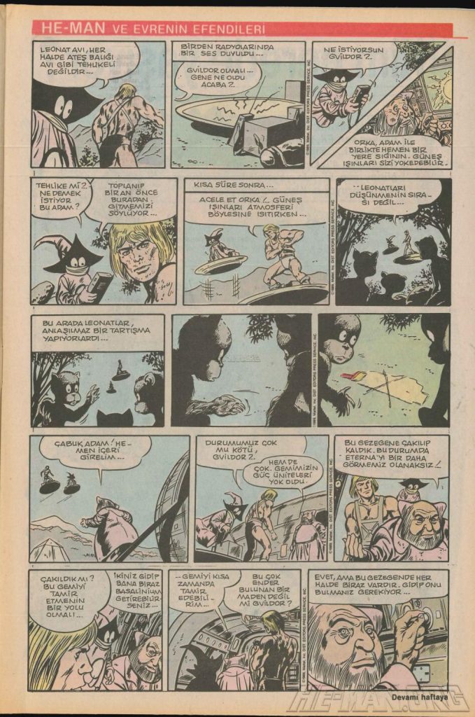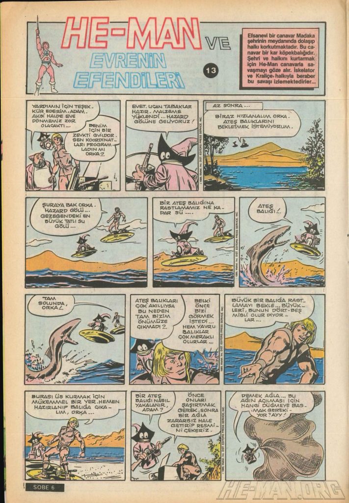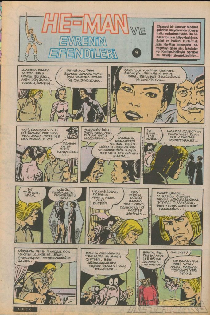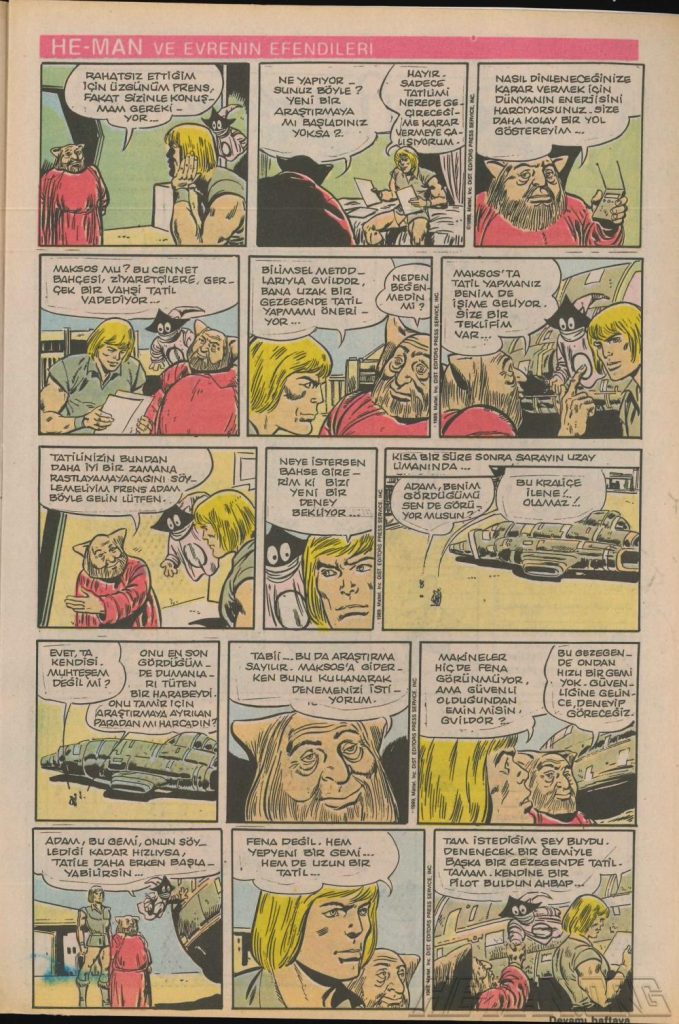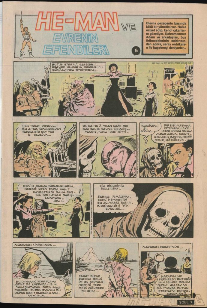 Here is the complete collection of the Turkish Sobe Gunaydin series. Each magazine featured a short MOTU comic in Turkish. We’ve included only the pages relevant to Masters of the Universe. These were translated from the original US newspaper comics illustrated by Gerald Forton. There were only 18 issues and only the first 17 issues have a He-Man comics page. Most issues have 2 pages dedicated to Motu but a few only had one page. Other stories in this series included Conan the Barbarian, Tom and Jerry, CIme CIme (a pirate comic), and occasionally a few short panels of other various subjects. Scanned by Ben Massa.