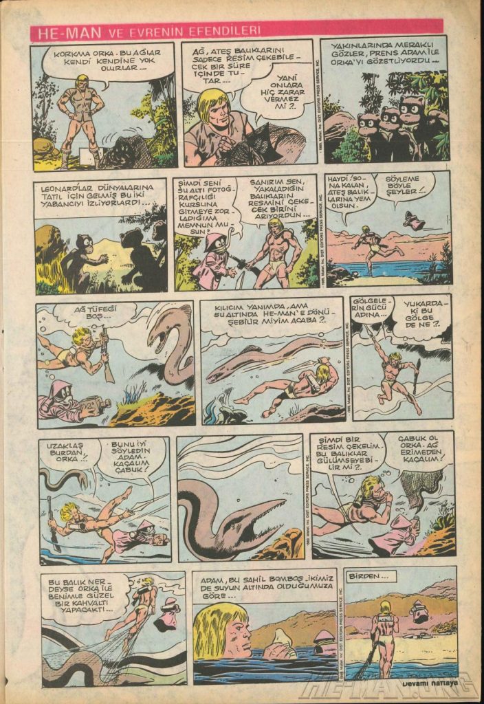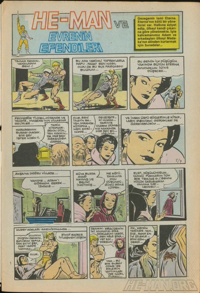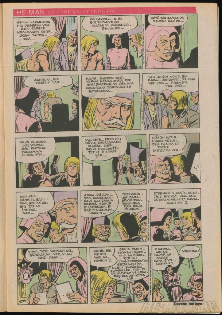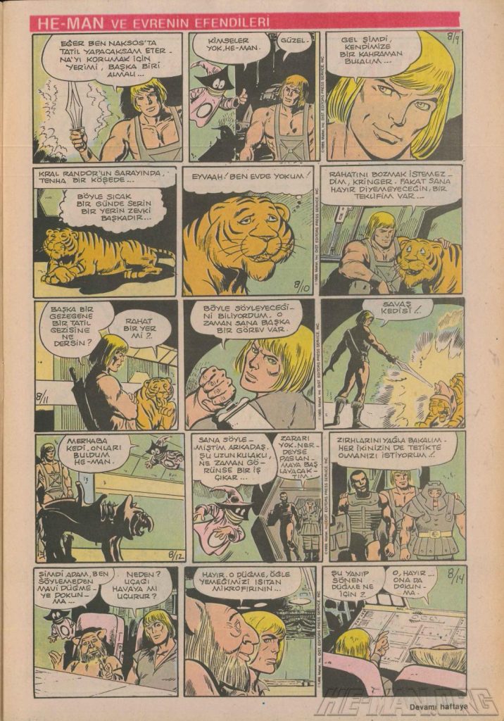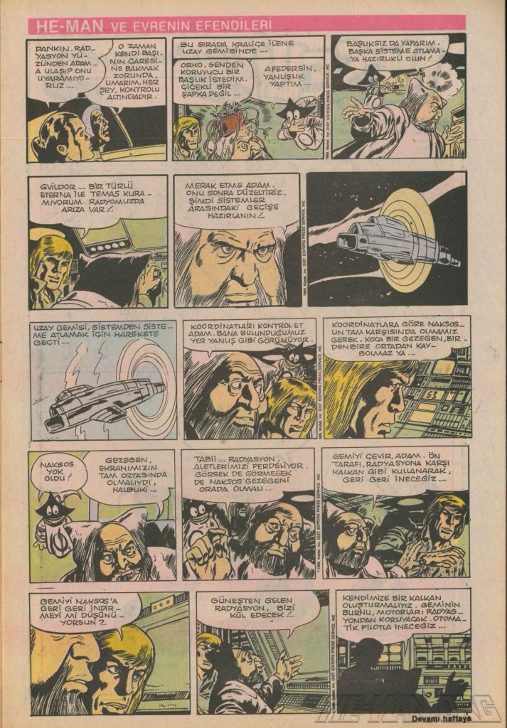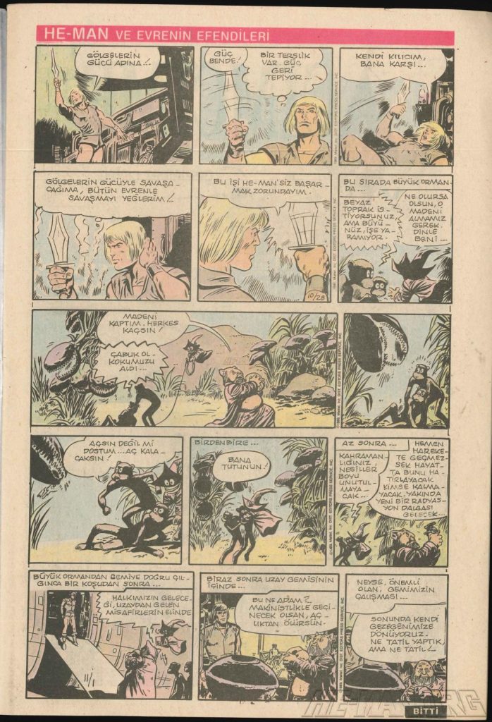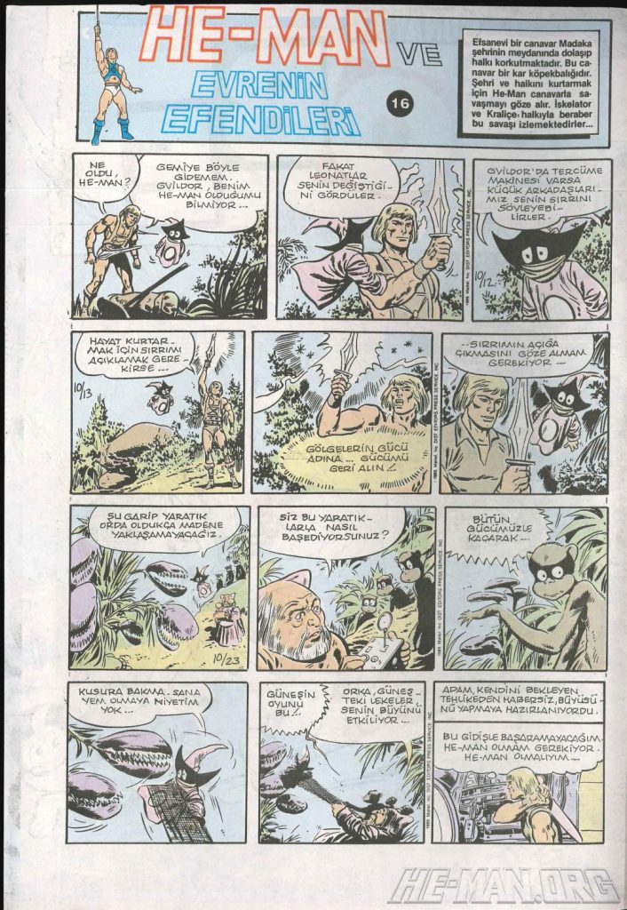 Here is the complete collection of the Turkish Sobe Gunaydin series. Each magazine featured a short MOTU comic in Turkish. We’ve included only the pages relevant to Masters of the Universe. These were translated from the original US newspaper comics illustrated by Gerald Forton. There were only 18 issues and only the first 17 issues have a He-Man comics page. Most issues have 2 pages dedicated to Motu but a few only had one page. Other stories in this series included Conan the Barbarian, Tom and Jerry, CIme CIme (a pirate comic), and occasionally a few short panels of other various subjects. Scanned by Ben Massa.