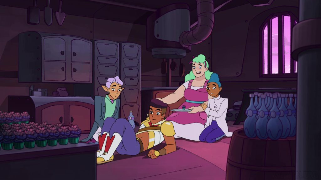 Landing in the massive underground maze of Dryl, Adora and Bow find themselves lost only to run into Entrapta herself. Meanwhile, Bow was taken in by Entrapta’s kitchen staff (a baker, servant, and provider of fizzy drinks) who have sealed themselves shut inside their quarters to avoid the robots.
