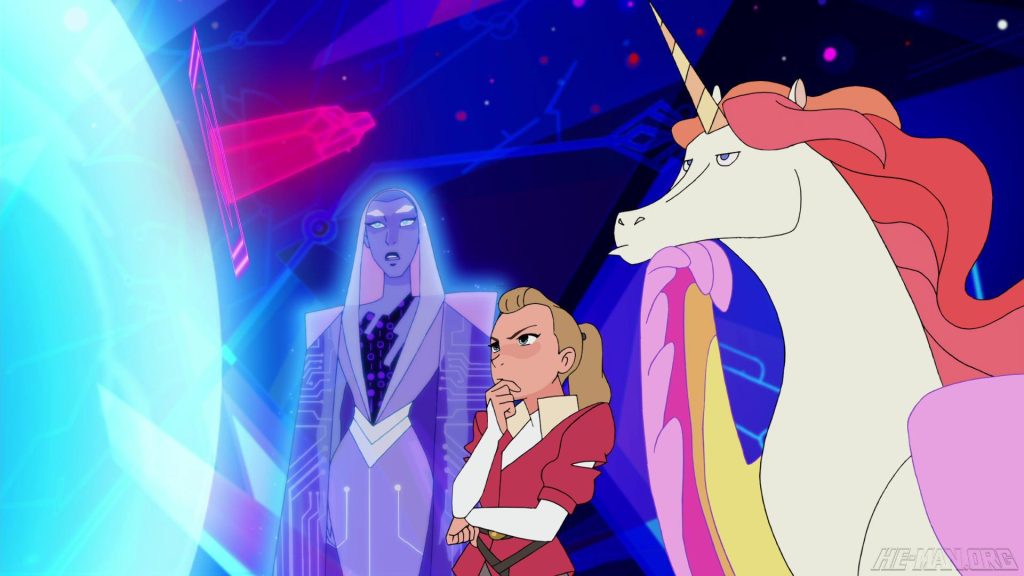 Over at the Crystal Castle, Adora continues her training showing significant improvements in combat as She-Ra. Light Hope informs her that she must form a sacred connection with her steed, and as Swift Wind shows up, the digital mentor crashes. After rebooting, Light Hope explains that the reason she crashed is because her system is overloaded. This is because her watch tower, a technological beacon that accesses her planetary mainframe was destroyed when Mara took Etheria out of the universe. If She-Ra and Swift Wind can repair the watchtower, then Light Hope will be fully operational and back at full force.