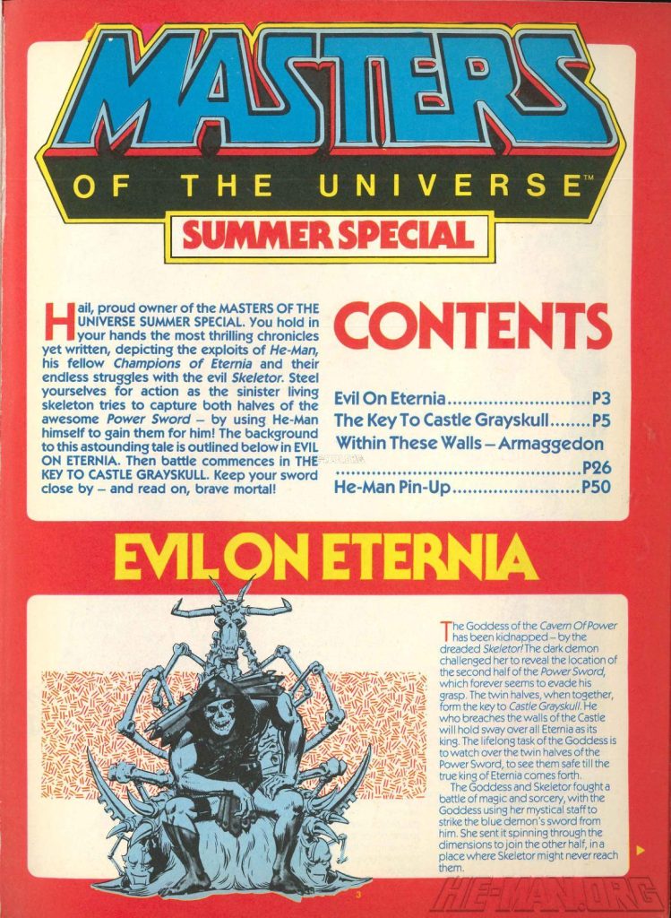 Scans courtesy of Ben Massa. This issue contains reprints of the DC Comics stories, “The Key to Castle Grayskull” and “Within These Walls… Armageddon!”